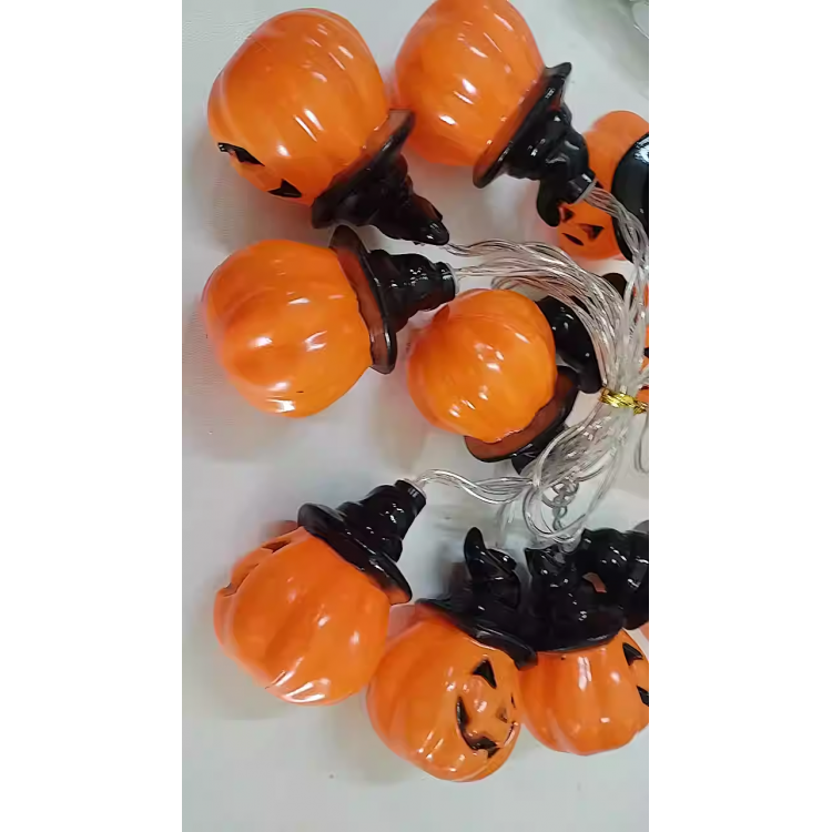 Гирлянда светящиеся тыквы-фонари, стилизованные под тыквы на Хэллоуин. Работает от двух батареек.