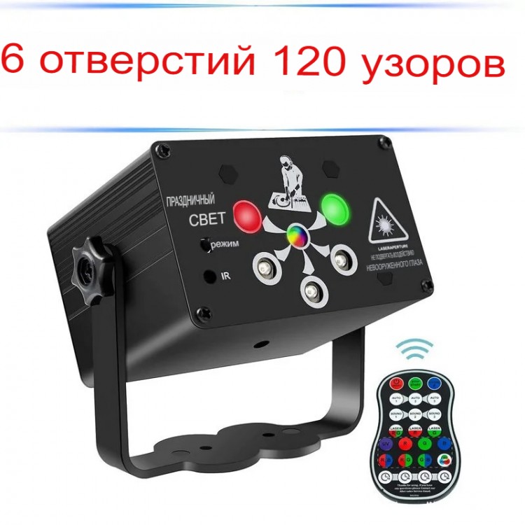 Диско-лазер на 6 отверстий — это универсальное осветительное устройство, сочетающее в себе различные источники света, в том числе 3-
