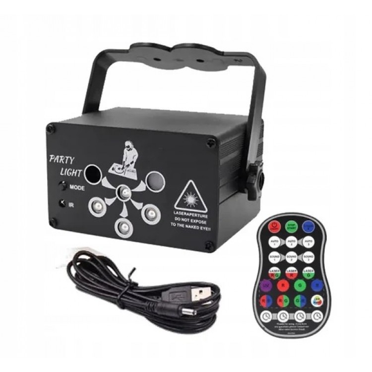 Диско-лазер на 6 отверстий, управляемый интуитивно понятным пультом дистанционного управления.